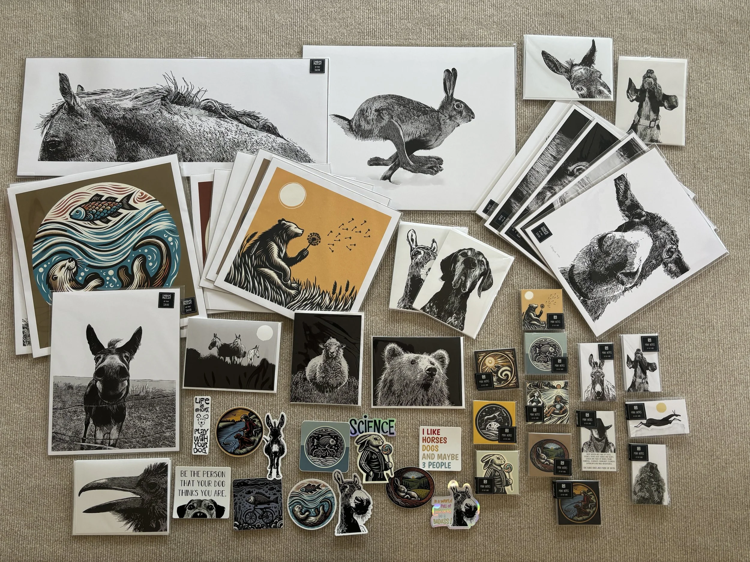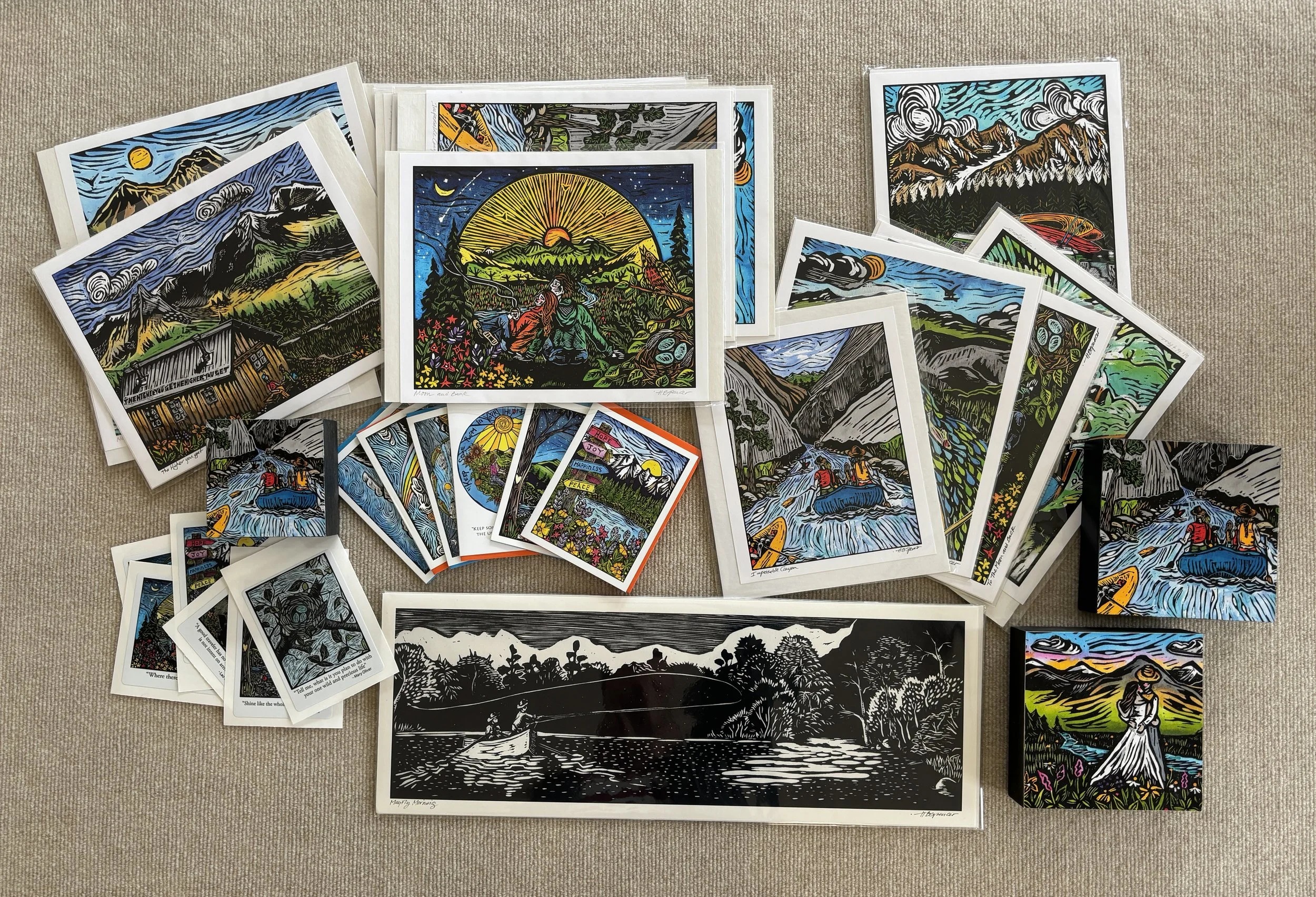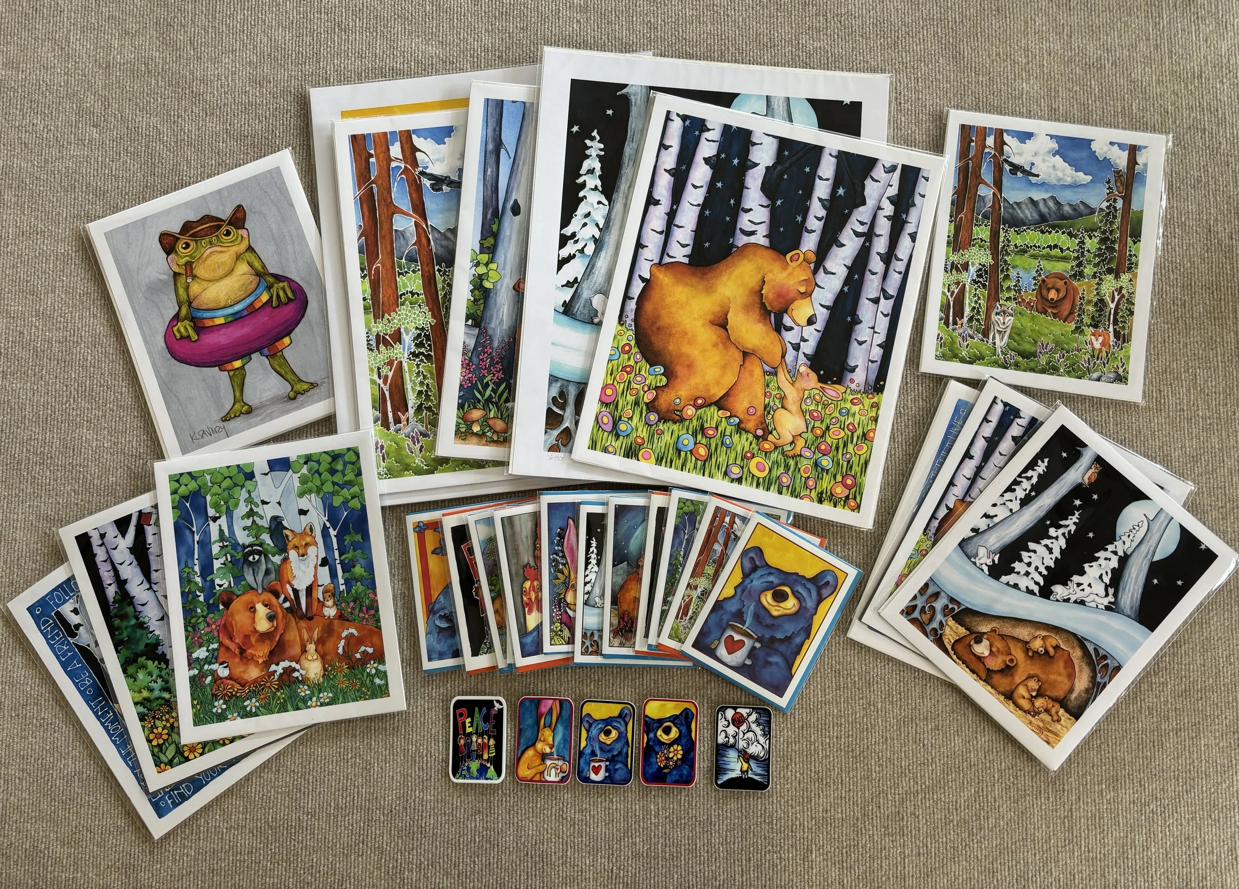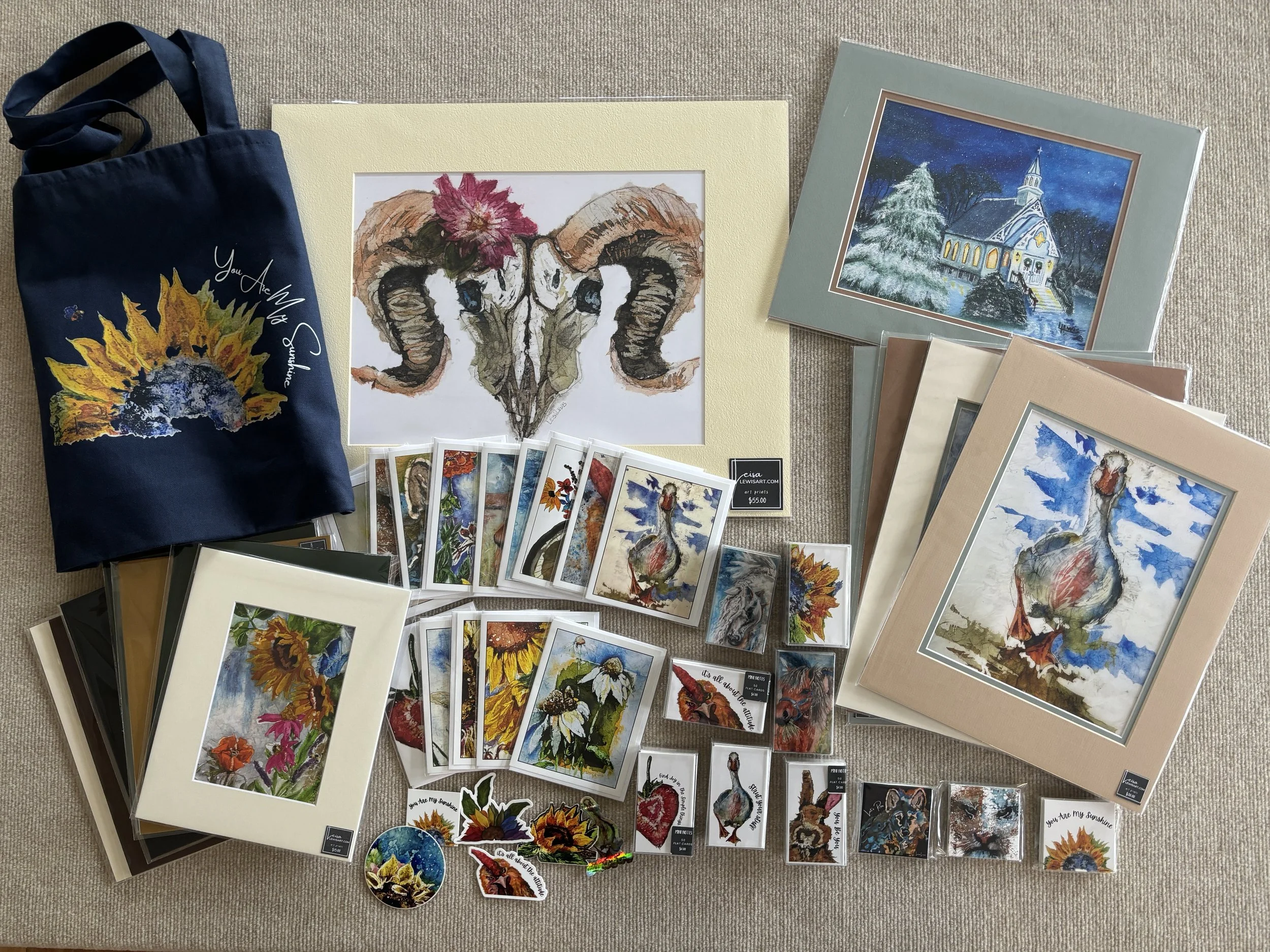 Hannah, Wendy, Leisa, and Karen offer wholesale pricing on products including notecards, stickers, mini notes & fine art prints. Together, we have over 150 designs of stationary items that represent our individual artistic styles that range from wildly colorful to heartwarmingly simple.